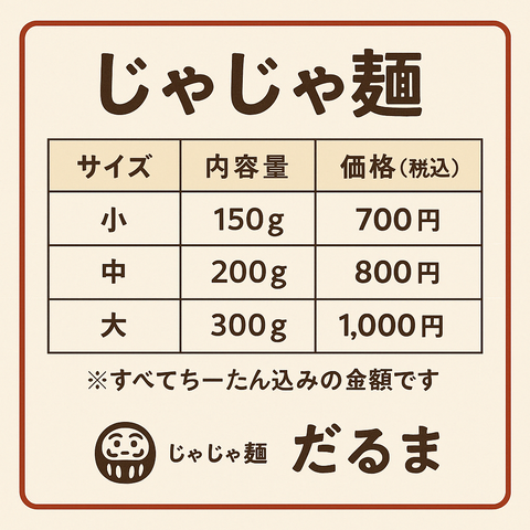 この投稿をInstagramで見る じゃじゃ麺 だるま(@jajamen_daruma)・・・